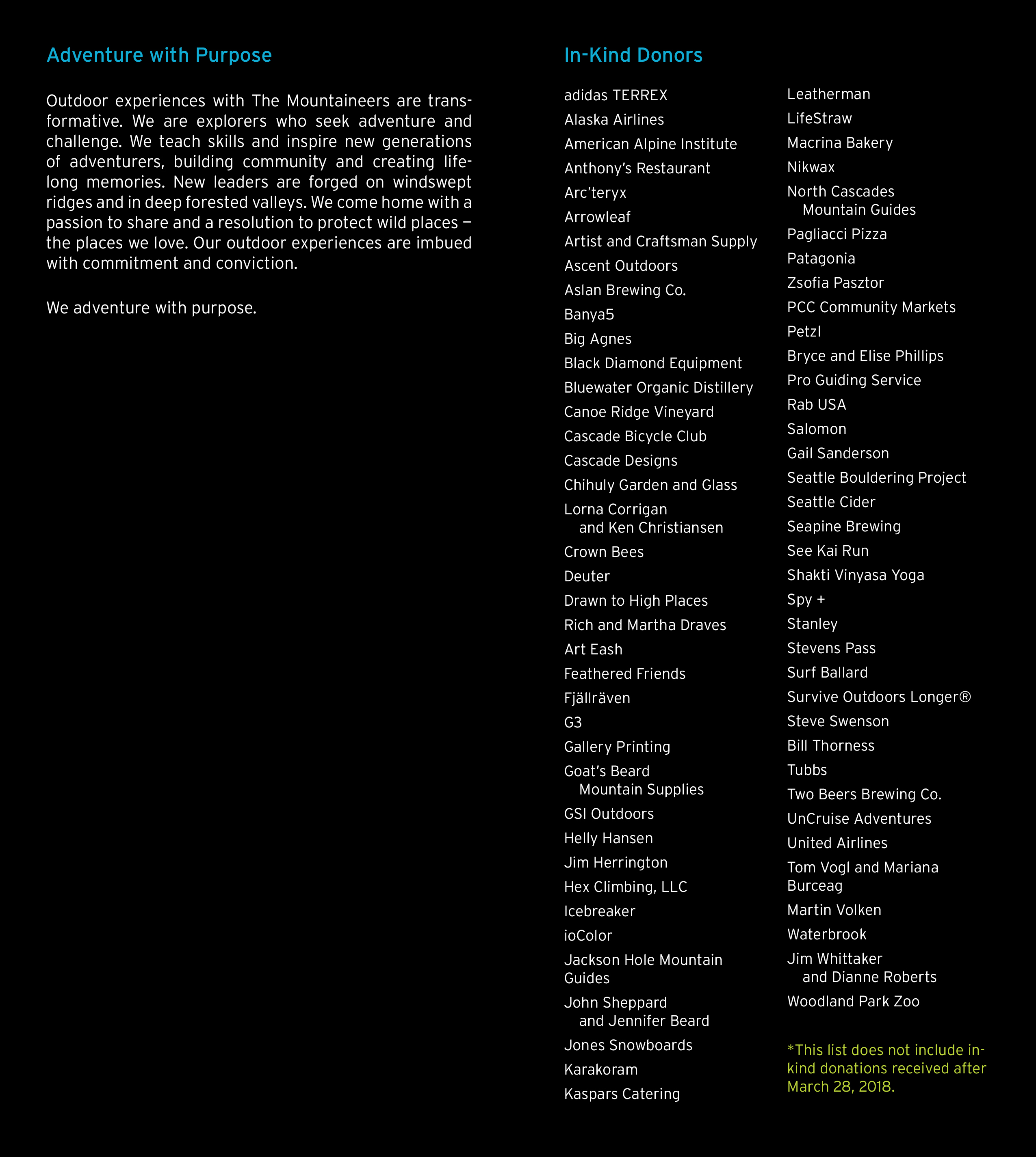 The Mountaineers 2018 Gala was the most successful to date, raising over $350,000 – surpassing our goal by over $50,000. The event included a presentation by world-famous rock climber, Lynn Hill and honored Tom Hornbein with The Mountaineers Lifetime Achievement Award. I created the branding for this event based on The Mountaineers colors and brand, with a fun and sophisticated design to communicate a bold and energetic evening.